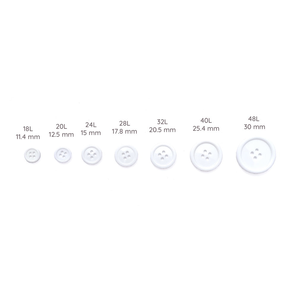 4-Hole Round White Plastic Buttons 8mm / 11mm / 15mm / 18mm / 20mm / 25mm / 30mm